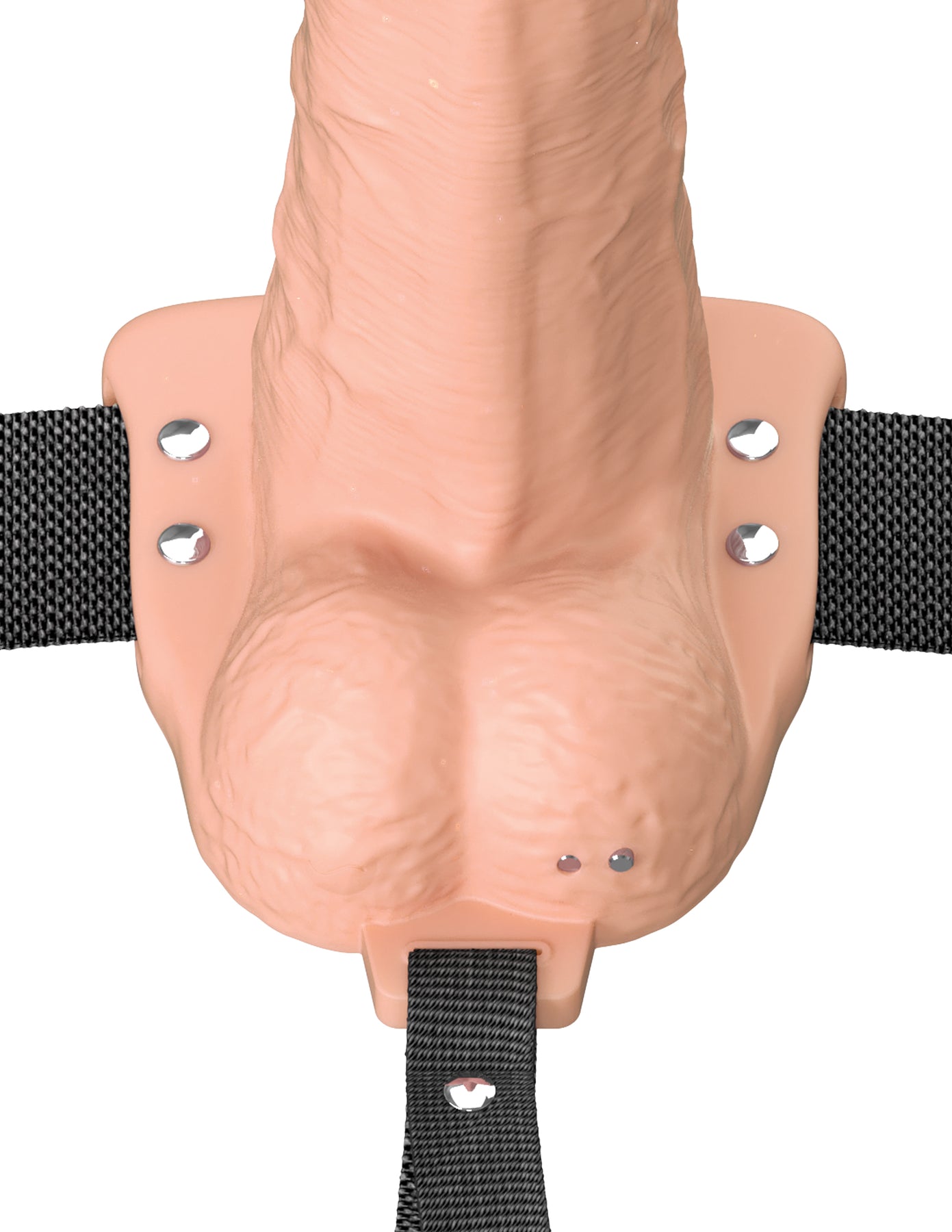 The insertable shaft is thick and sturdy, measuring 1.9" maximum shaft diameter plus 6" of insertable length for the receiving partner. Inside, the 1.6" hollow opening fits securely around the wearer and offers up to 4" of internal depth. The narrower tip + progressive diameter make this the easiest Vibrating Fantasy Xtensions.
