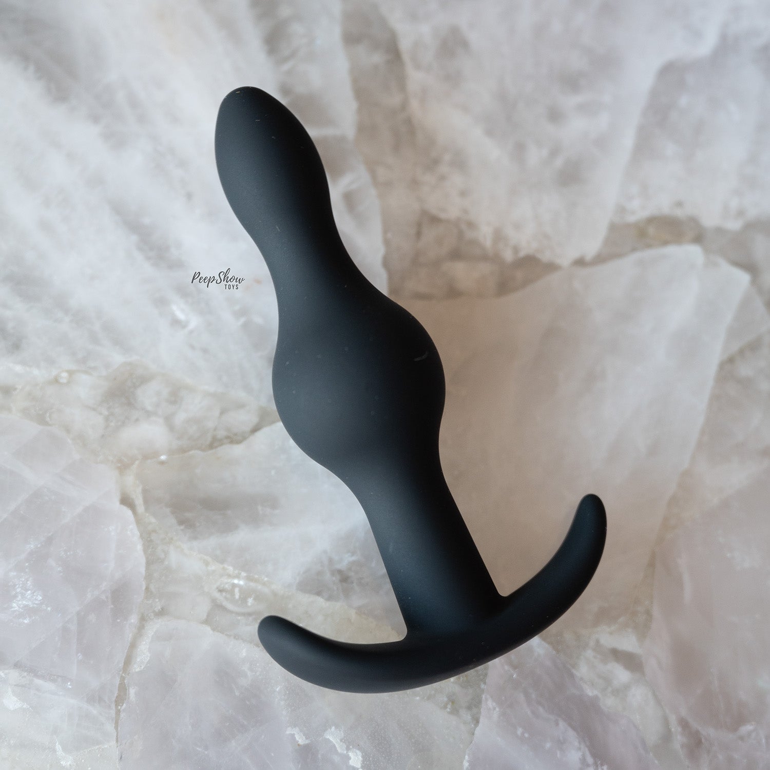 Two additional non-vibrating silicone plugs provide quieter options to train up through: one slim and tapered for the easiest insertion, and one contoured to add a taste of internal pressure and sensation.