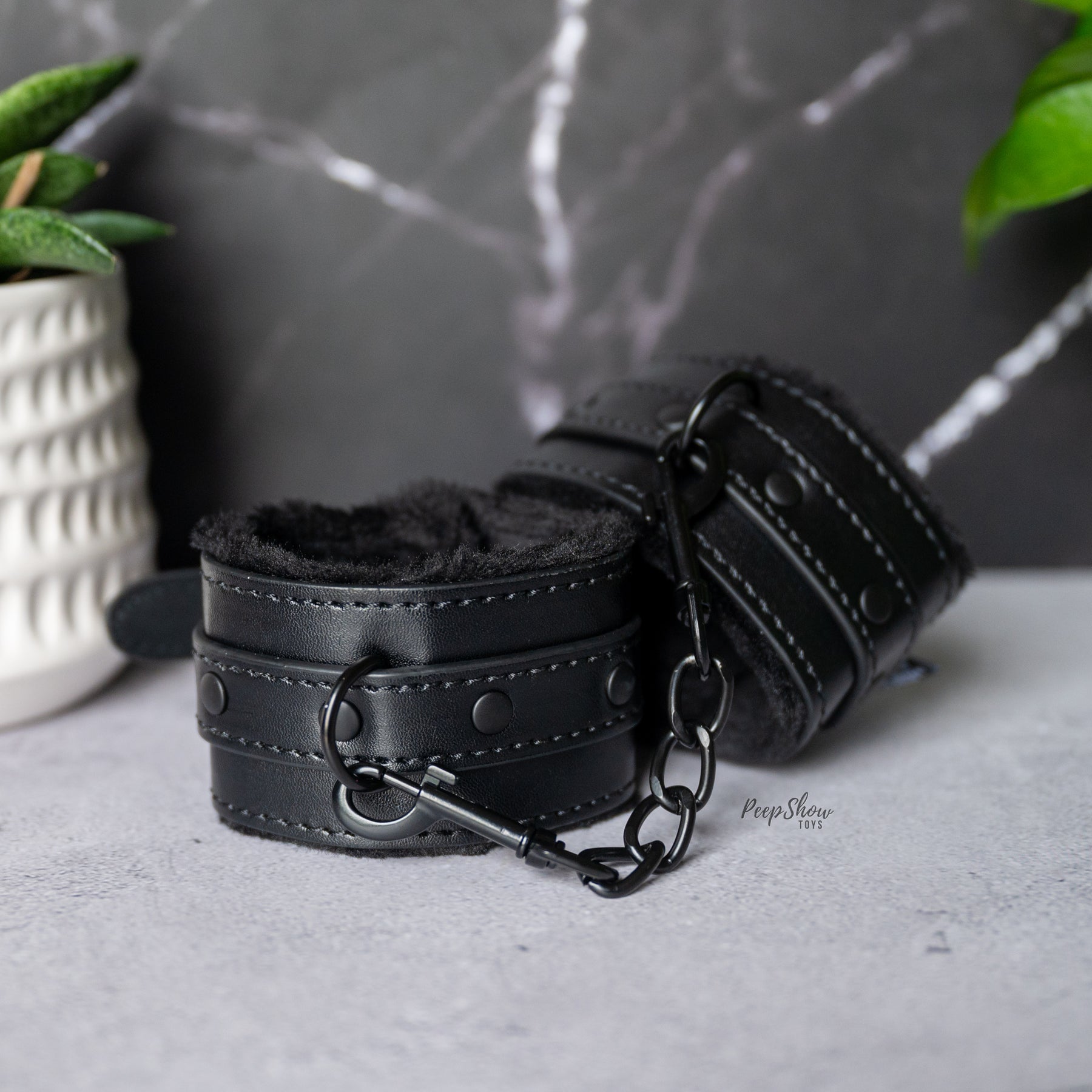 The synthetic "fur" is smooth against the skin, great for sensual D&s play — and the seductive feel of having your wrists restrained by a trusted partner.