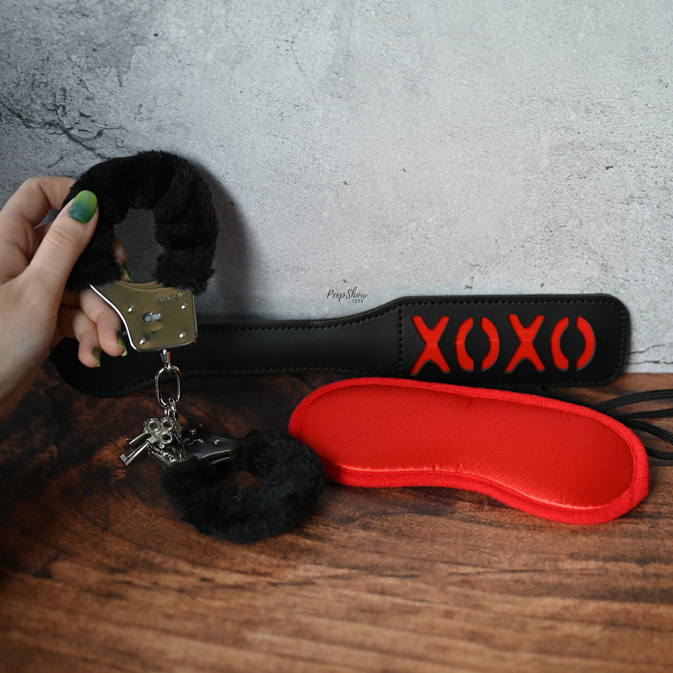 The slapper paddle is designed to leave lightly red XOXO on their rear end, after harder swings.
