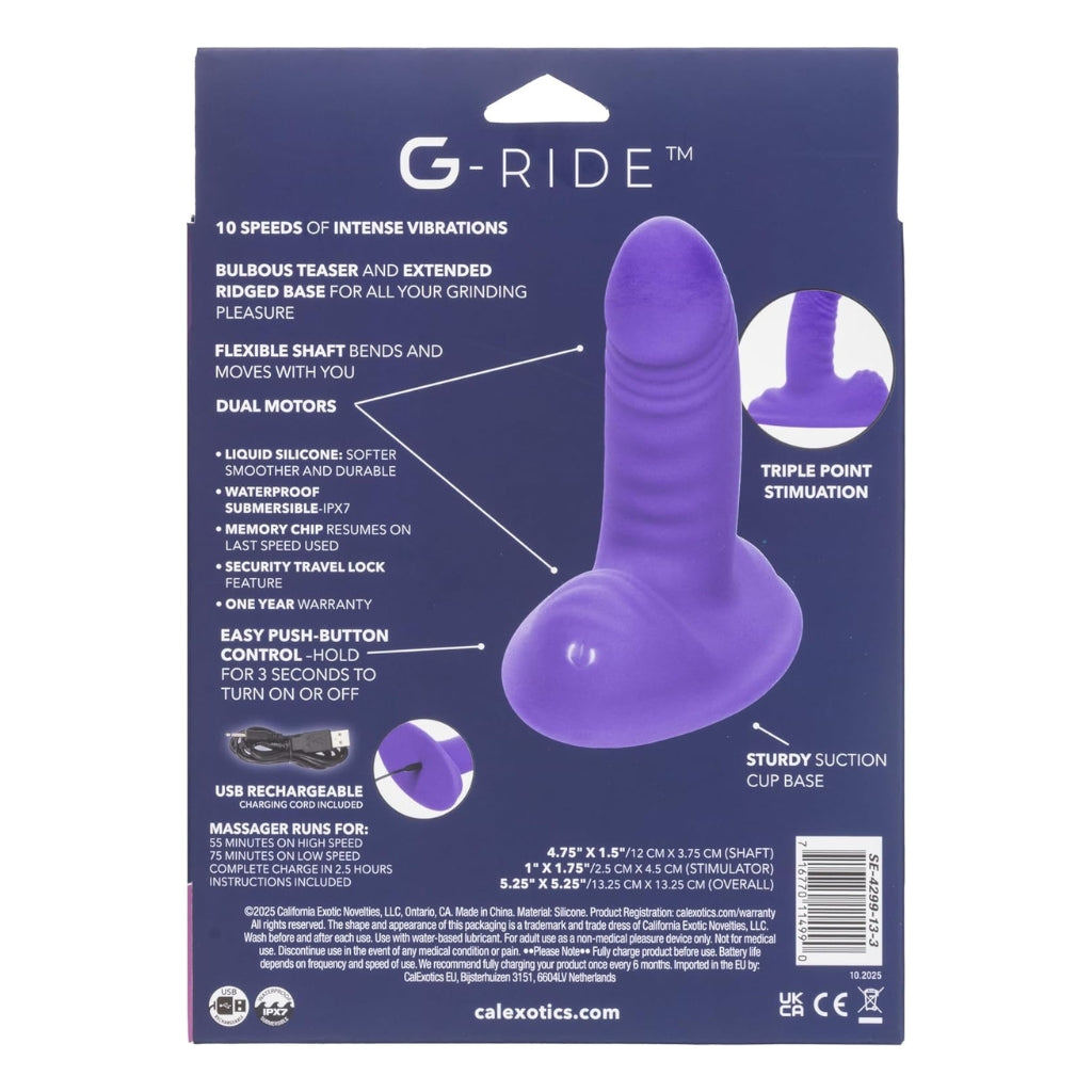 The G-Ride Thrill Ride grinder vibrator is designed for anyone who enjoys internal stimulation while grinding externally at the same time.