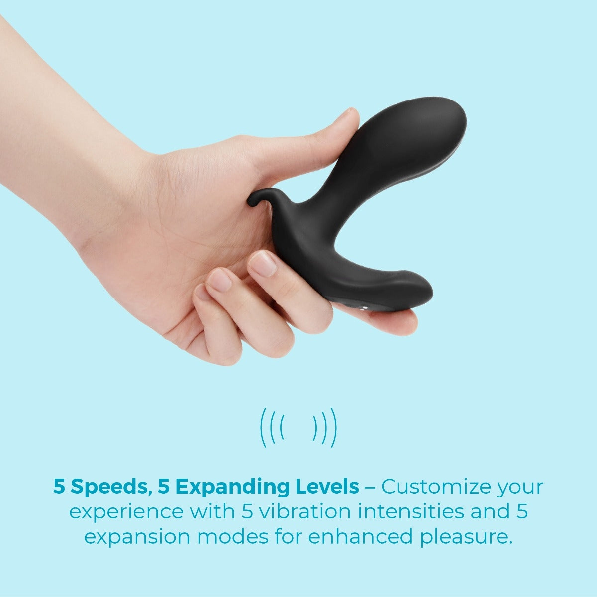 Five expansion levels plus five vibration patterns let you control size and intensity at the push of a button.
