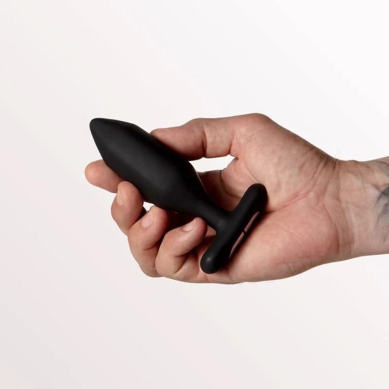 Waterproof and USB rechargeable plug; made of body-safe silicone with a safely flared T-bar base.