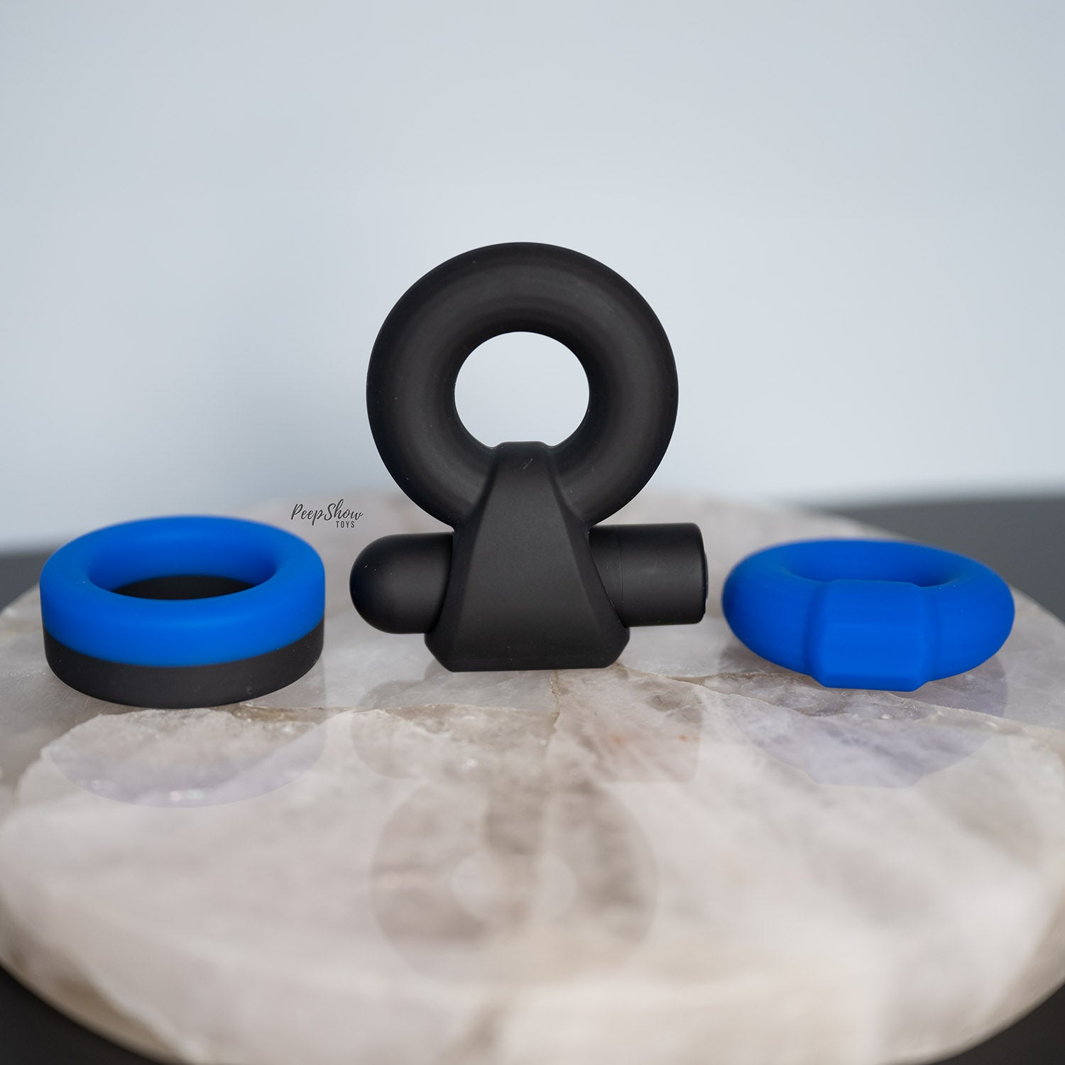 Our Soft-Silicone Ring Pack with vibration includes 3 styles of super-soft silicone penis rings, all skin-safe and made to last. One ring includes a high-speed bullet vibe that can be used solo, too!