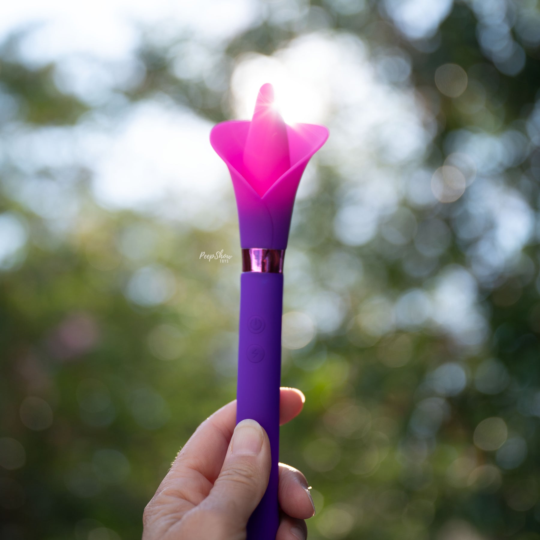 This strong bud 🌷 can cup the labia and fuller vulva, while apply clitoral pressure via its tongue. Or push the tip of the flower's tongue inside for shallow vaginal sensation.