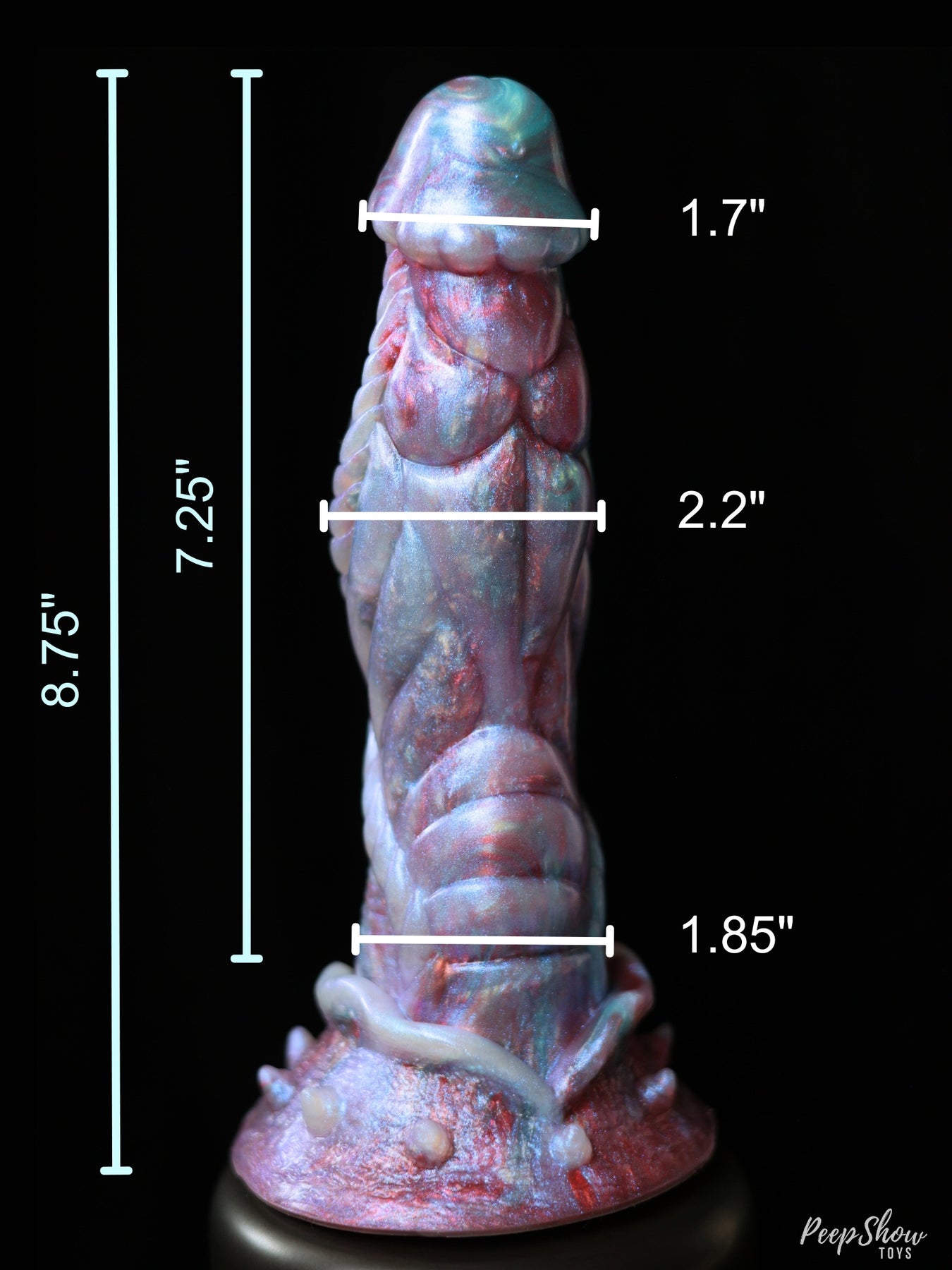 The Nereon's size is best for users who desire impact up top, plus thickness in the middle. At 2.2" maximum diameter, this fantasy dildo is not for beginners.