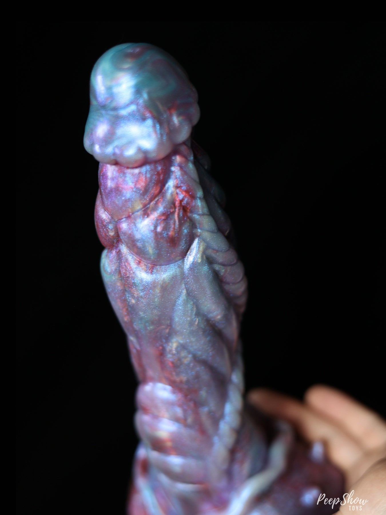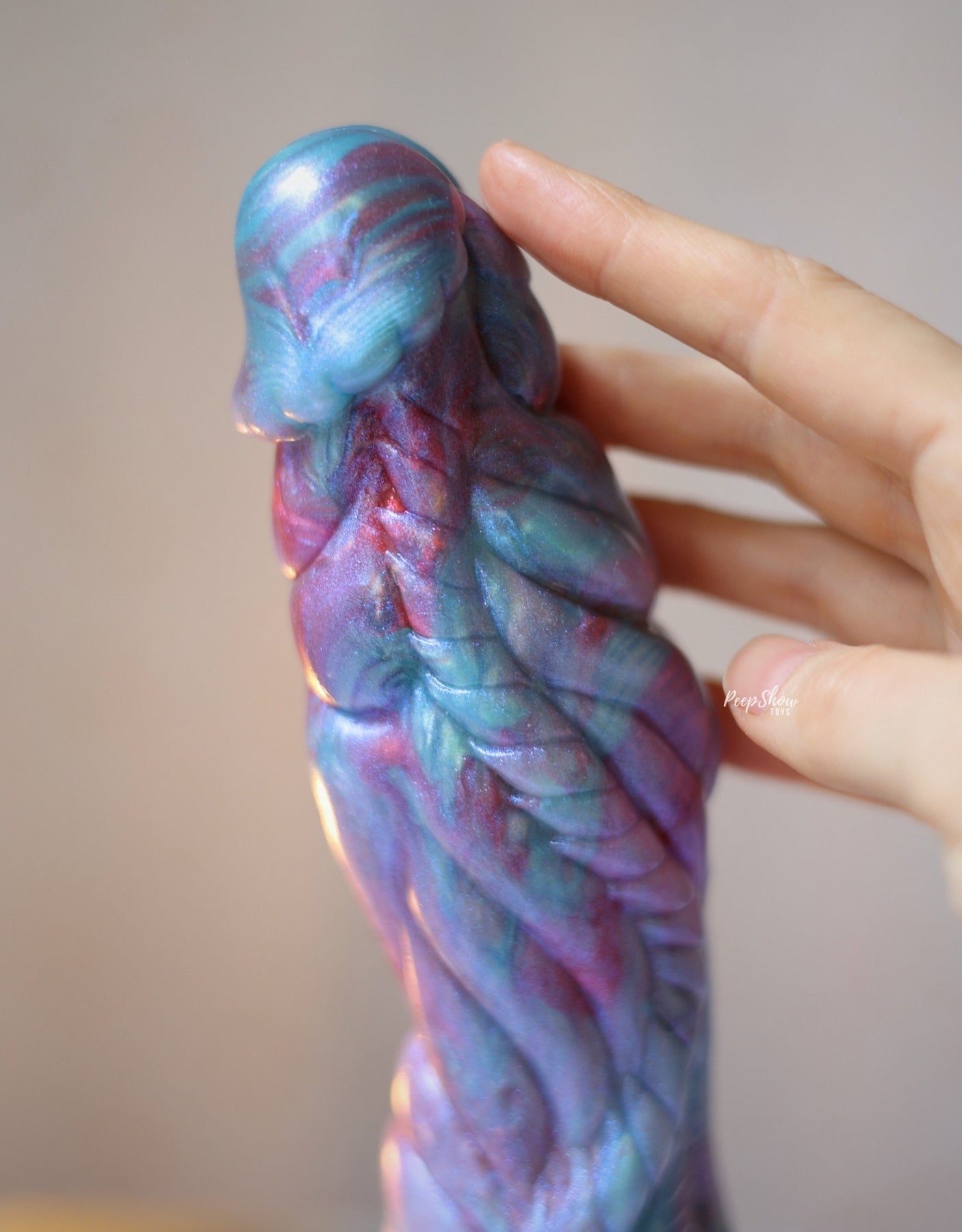 Fantasy magic with G-spot / P-spot focus + thickness below! The Nereon sea god fantasy dildo's head will make an impression for G-spot or prostate stimulation – while its bulge and incredible textures make the whole toy stand out.