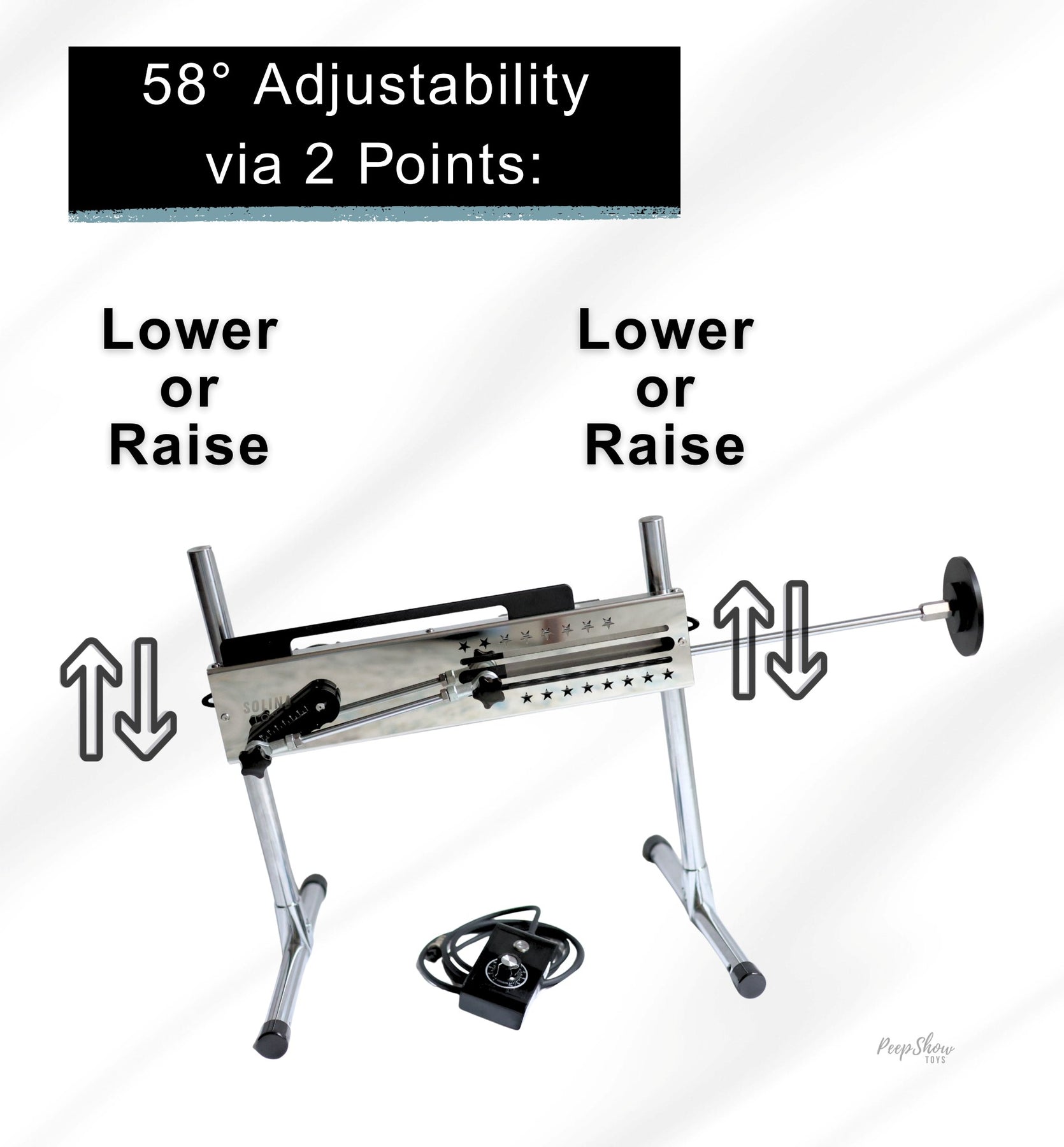 Find your best angle for hands-free penetration: Two support beams move the fucking machine's powerful 120-watt motor up or down: