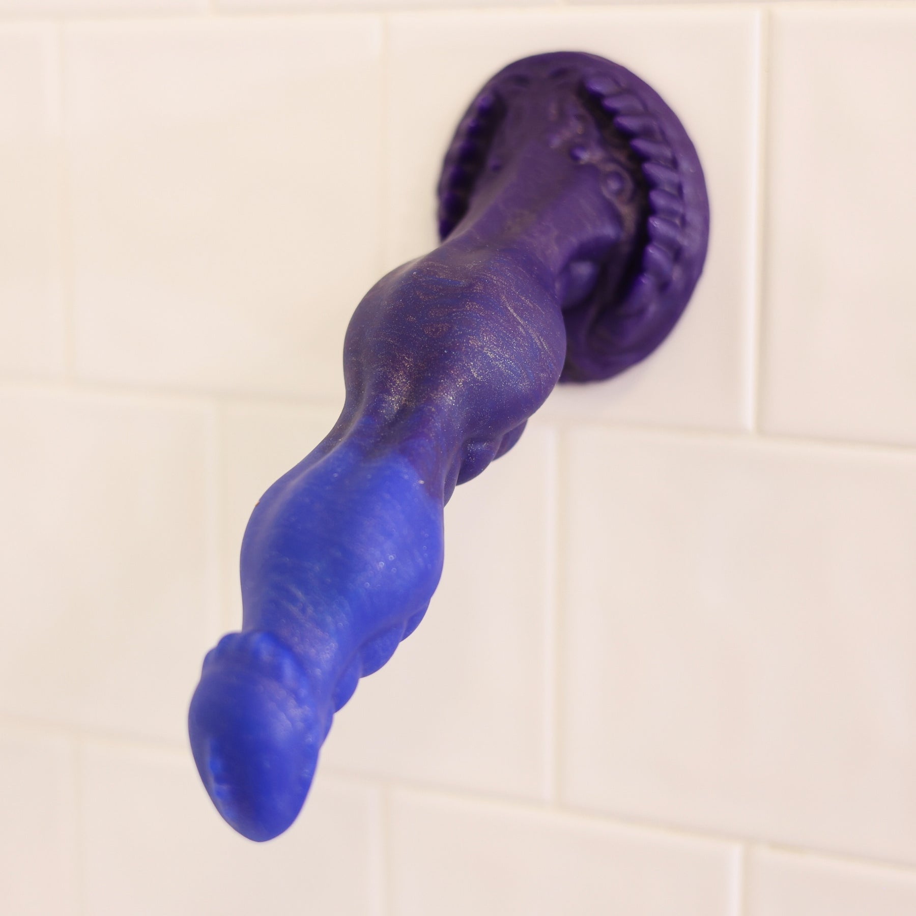 2 bulging knots are ready for a ride in the Trolnir squishy-soft fantasy dildo. With a strong suction cup base, this muscular toy has smooth bumps all down its length.