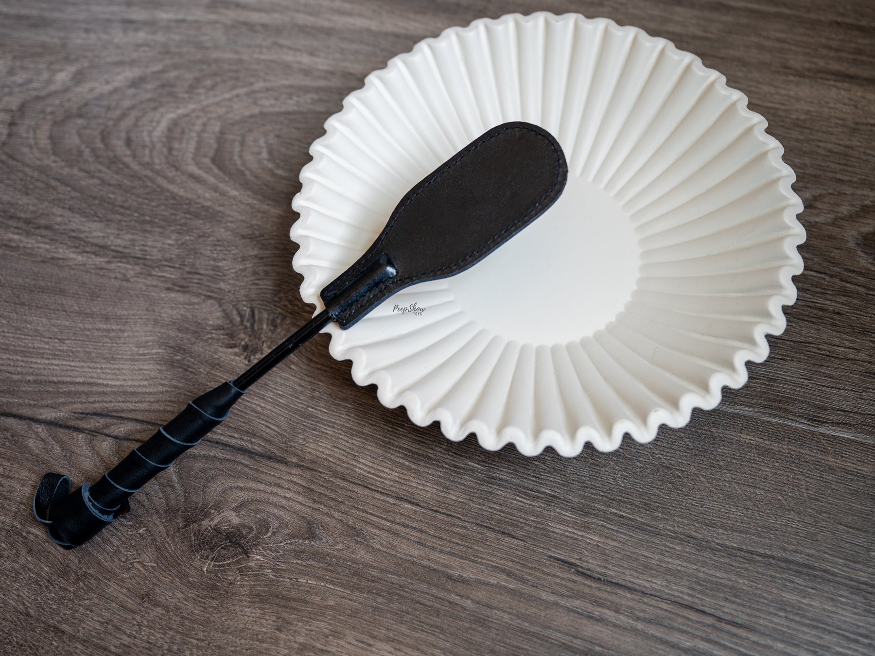 Real leather, the Mini Oval Paddle's compact size makes it easy to wield: