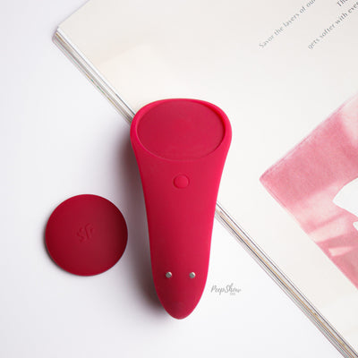 Vibration + perfect fit make Satisfyer's Sexy Secret an amazing wearable clit vibrator. This Satisfyer vibrator slips inside your underwear: then fasten the magnetic clip outside for stable contact. The Sexy Secret's raised, contoured shape is designed for maximum pleasure.