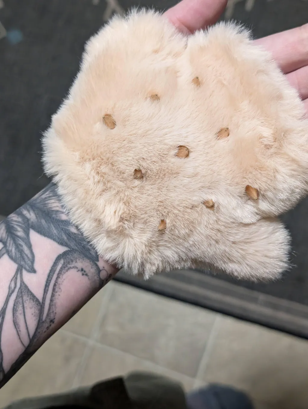 Soft faux-fur meets firm metal spikes underneath! The Peaches n' Creame Spiked Sensory Glove is a treat for playing hard vs. soft: