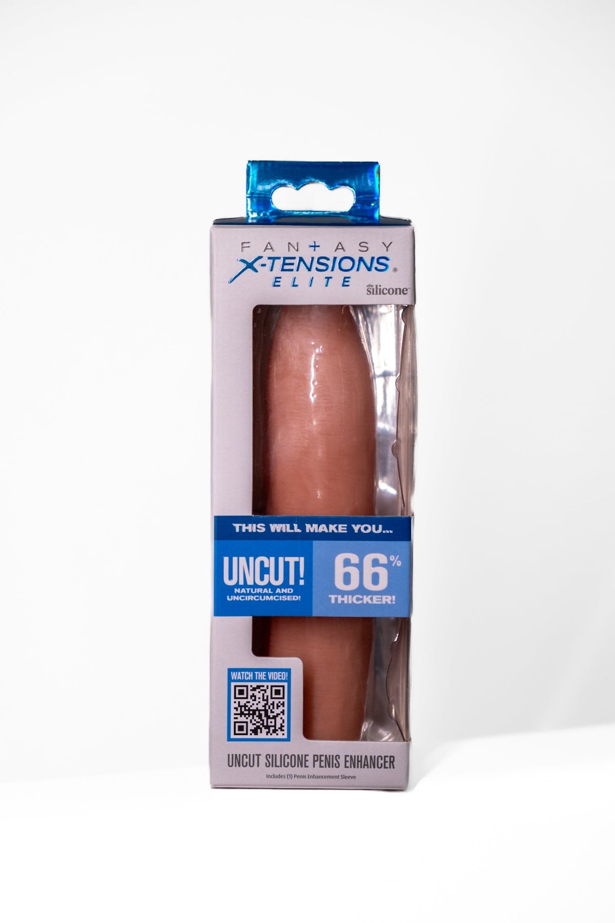 7 inches of platinum silicone, the Uncut Silicone Penis Enhancer will stretch to fit most shafts. Made of supple, skin-tastic detailed silicone.