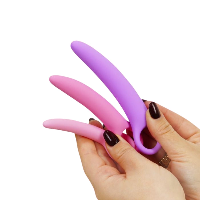 Each dilator widening is really good for gradually easing into it. The handle allowing for finger hooking is really convenient too. Good quality. It also came with a large bag, which is awesome since I don't have to buy one to store my other toys too.