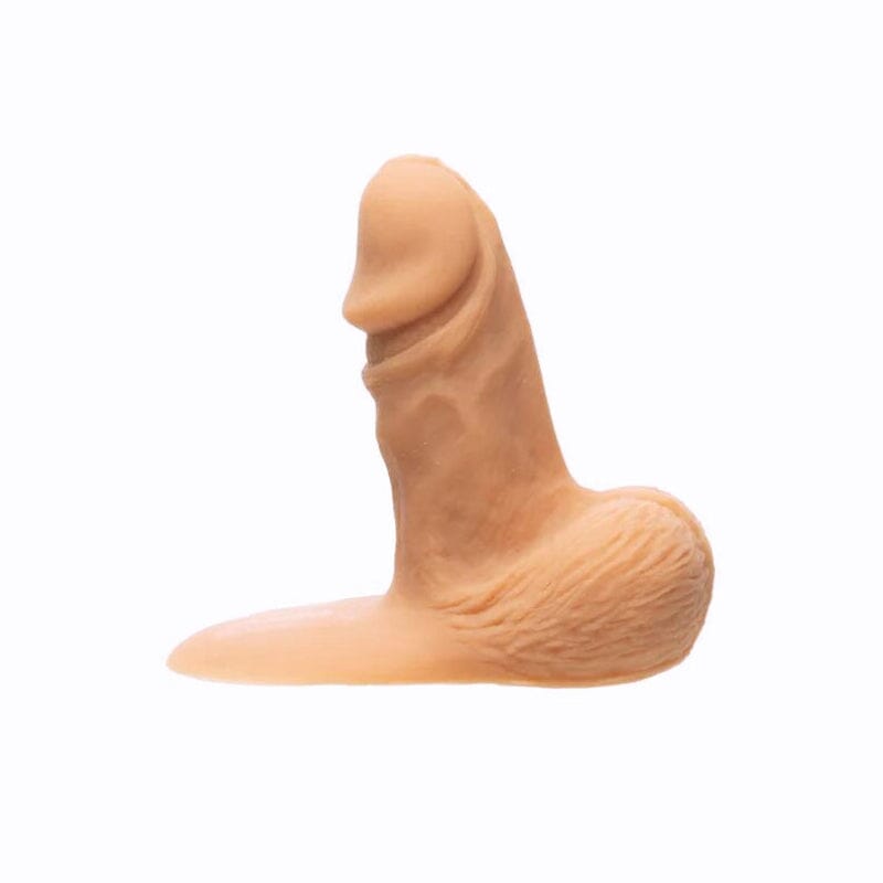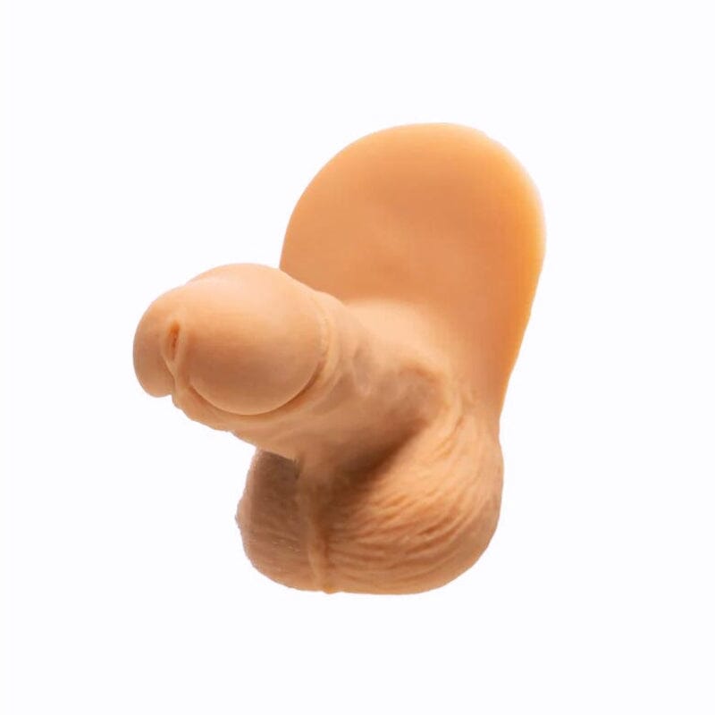 This soft, flaccid peen features realistic details: veins, a full frenulum, a urethral slit, plenty of scrotum texture, and a foreskin ripple pulled back under its coronal ridge. It's the perfect size to create just enough bulge. Made of 100% silicone.