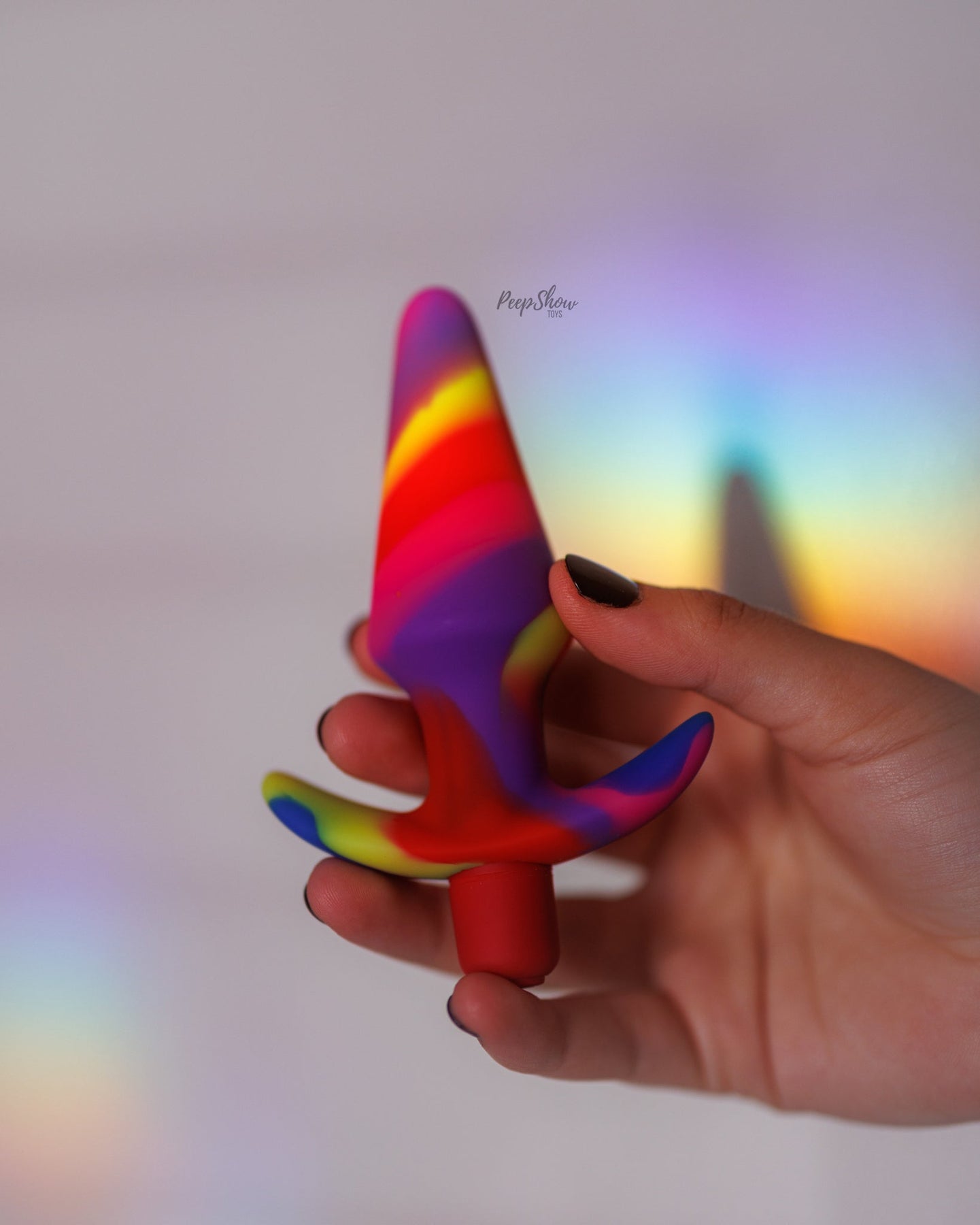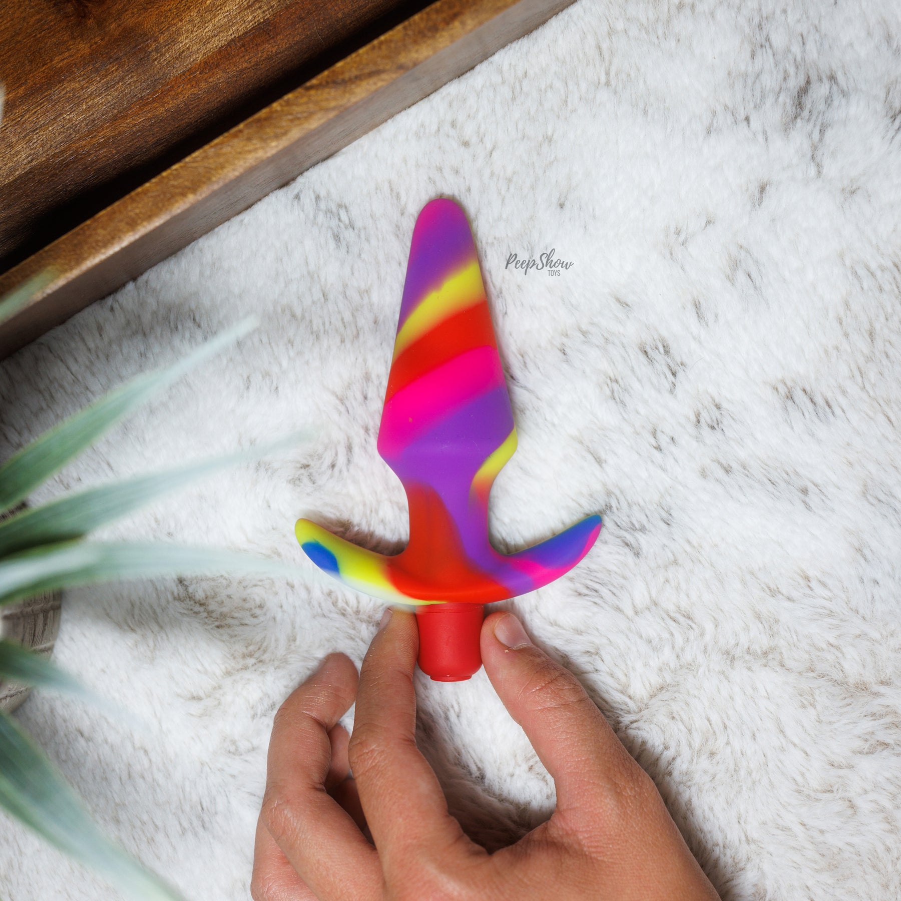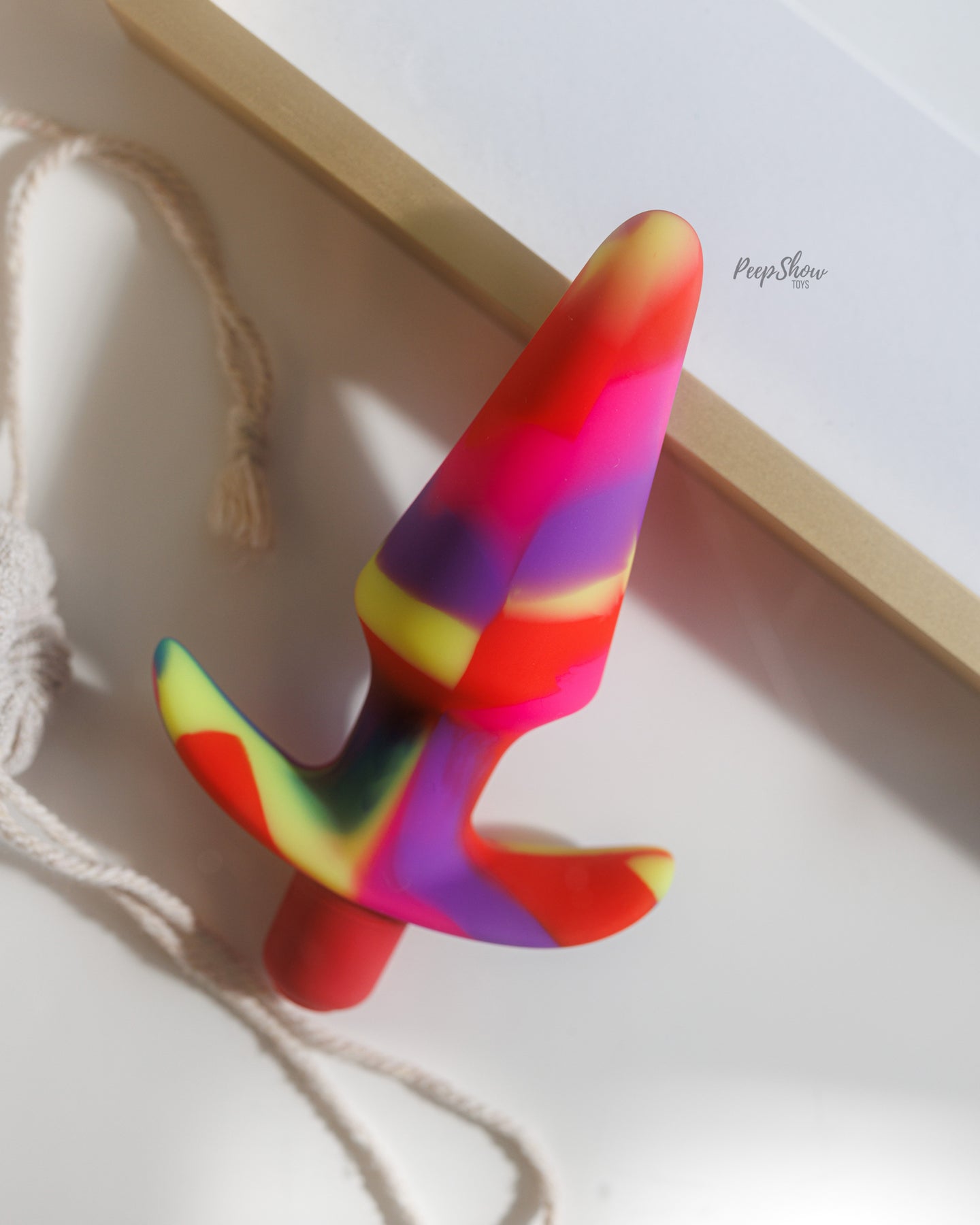 The Avant Free Spirit delivers joyful colors, in platinum silicone. This ergonomic plug is made for comfort, with smooth silicone and an anchor base that curves to fit between the butt cheeks!
