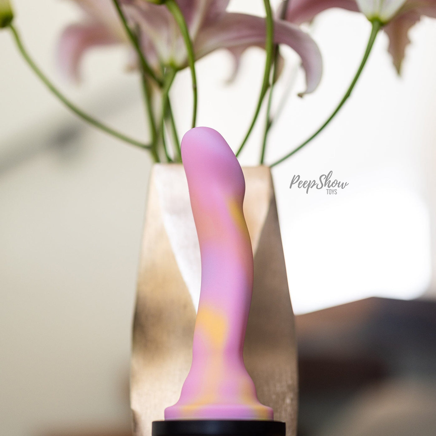 The Avant Sun's Out dildo will brighten your play with its gorgeous pastel color. Lilac, golden orange, and rose blend in platinum silicone, creating an erotic artwork!