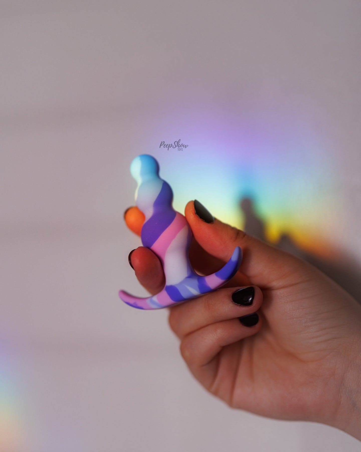 Ultra-colorful + full of sensation, the Avant Twilight has 3 progressive beads!  Start small, with a gentle popping feeling as you move down past the 2nd and 3rd silicone anal beads.