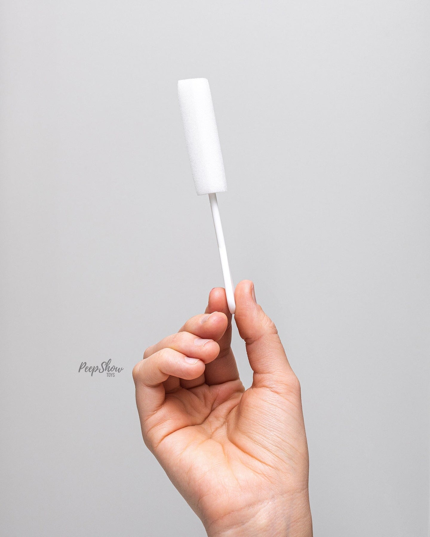 Made of high-grade polyurethane, the sponge soaks up semen. For vulvar & vaginal use; not safely flared for anal play. The Dripstick's nonporous plastic handle allows for easy removal.