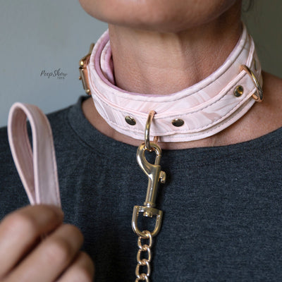 This sexy collar can be worn to show submission: then, clip on the leash at any time for leading Dominant/submissive play.