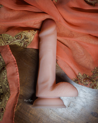 The Dr. Daniel Posable Silicone Dildo is perfectly sized for anyone who wants a comfortably shorter toy, but with extended balls to grind against!