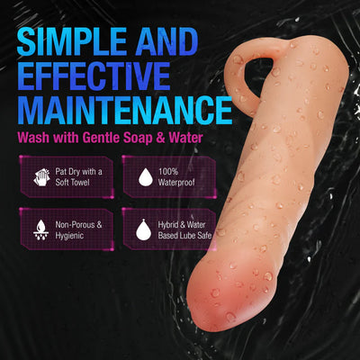 Fleshy soft! The Fortitude extender adds 3 inches length onto the penis that wears it.