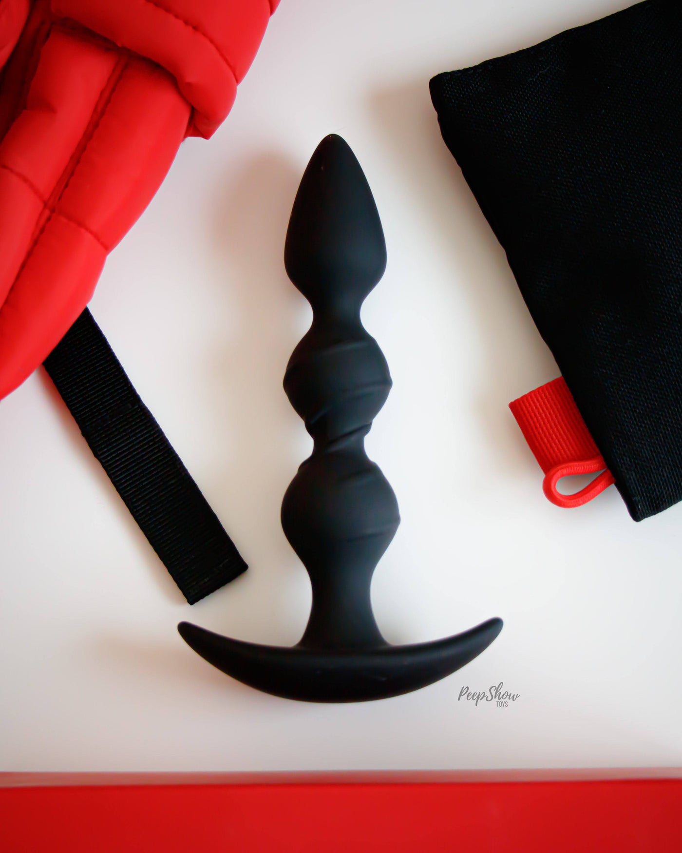 F-42 Spiral Beads are wearable as a plug too. The comfortable anchor base will fit snugly and securely between the butt cheeks, and also serves as a handle for moving F-42's bumps. Perfect for exploring solo, or adding new sensation with a partner.
