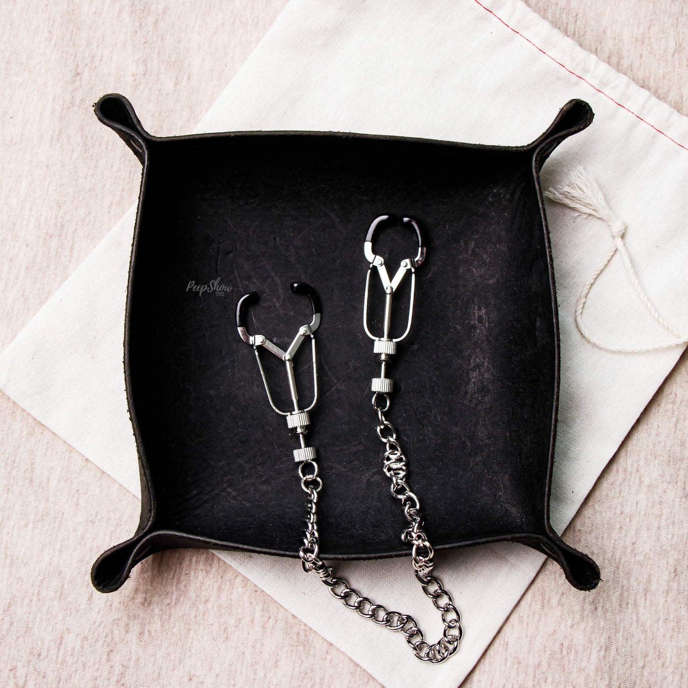 Add an adjustable pinch to your play with Helix Nipple Clamps. Pull to adjust sensation: perfect for adding to foreplay or wearing during lovemaking. Or wear Helix Nipple Clamps solo, for extra stimulation during masturbation, like alongside your favorite vibrator. The swinging chain looks and feels sexy against the skin.