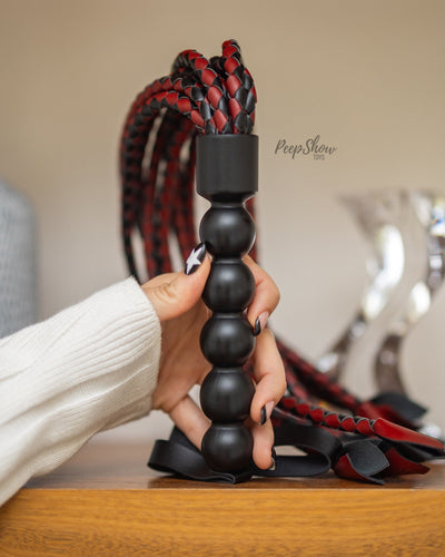 The Braided Flogger's "bubbled" handle has a space for each finger, ensuring better grip.