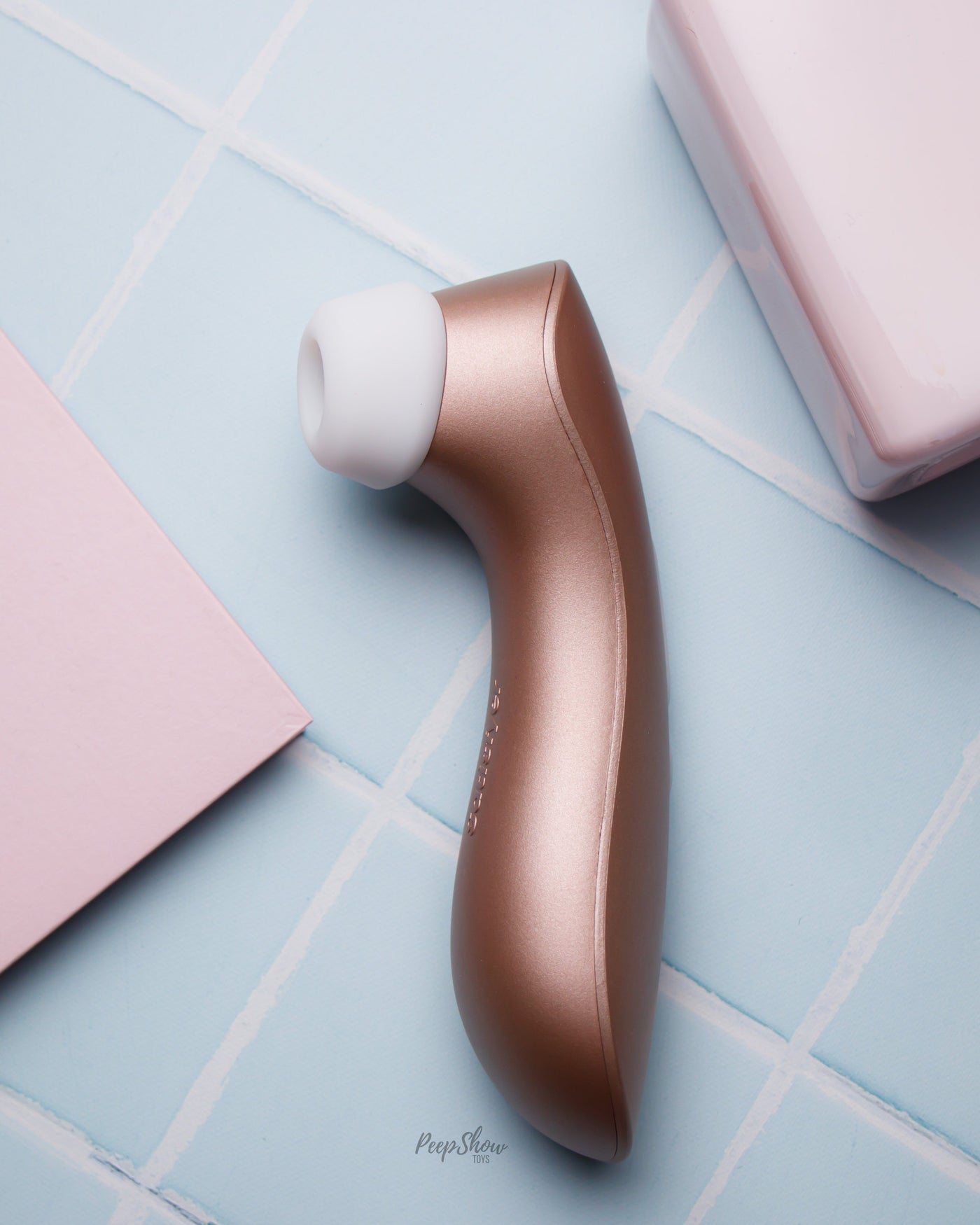 Compared to previous Satisfyers, the Pro 2 Vibration has a new, slim shape whose curves are designed to fit comfortably in your hand. The skin-safe silicone nozzle is also wider than before, to surround the clitoris more effectively.