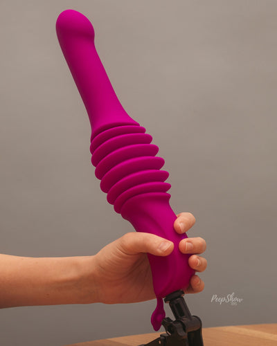 The Smooth silicone Overdrive Machine features a gently bulbous head, for gliding stimulation as its shaft moves automatically. (See also the Ridged version of the Overdrive Machine for more intense Gspotting texture.)