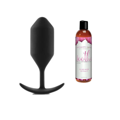 This bundle includes one Snug Plug and a bottle of Soothe lubricant. Choose between Snug Plug Vibrating 4, with 1.7 inches max. diameter; and Snug Plug Vibrating 5, with 1.9 inches max. diameter. These weighty plugs deliver a sure-fire stretch.