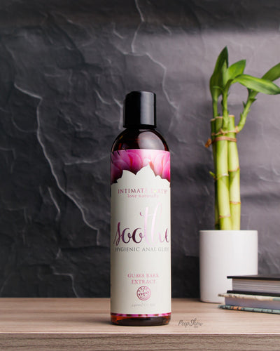 Intimate Earth Soothe Anal Lubricant offers maximum lubrication for comfort and enjoyment. Blended with guava bark extract, a natural antibacterial agent, Soothe is a premium water-based lubricant specifically formulated for anal play. DEA free and pure vegan, Soothe is also made with certified organic extracts. It's latex condom friendly and safe to ingest.