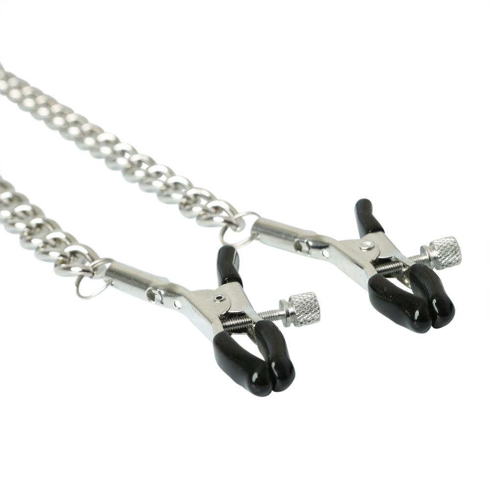 The clamps will stimulate the wearer constantly, and heighten arousal as you play! The collar and moving chains add sensation too, fastened firmly around the neck and brushing against the wearer's skin.