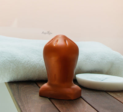In SquarePegToys®’s SuperSoft Bronze silicone, Splitter is engineered to be more comfortable for girthy anal stretching.