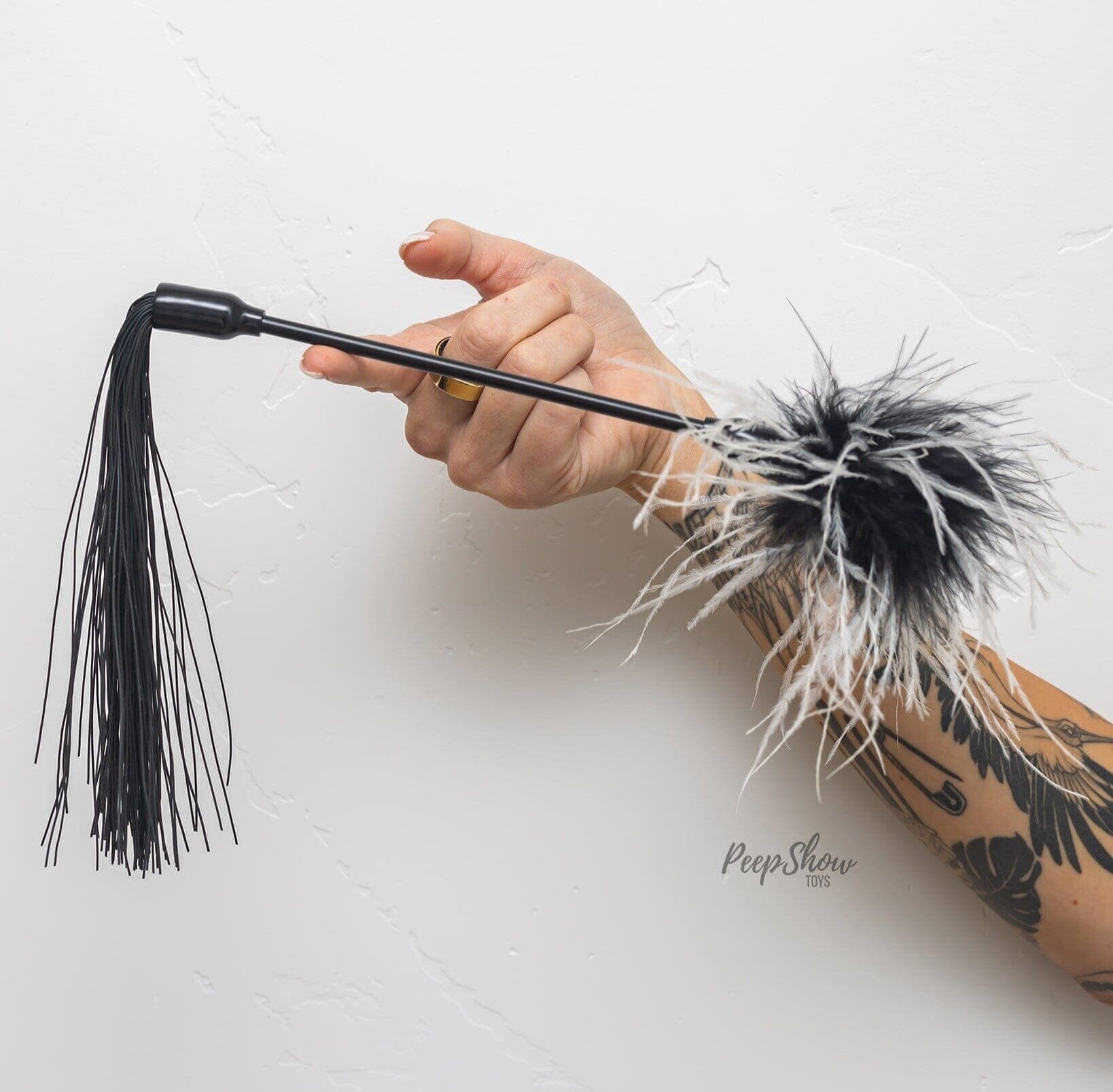 Tickle with a soft feather, or spanky-whip their skin with a mini-flogger!