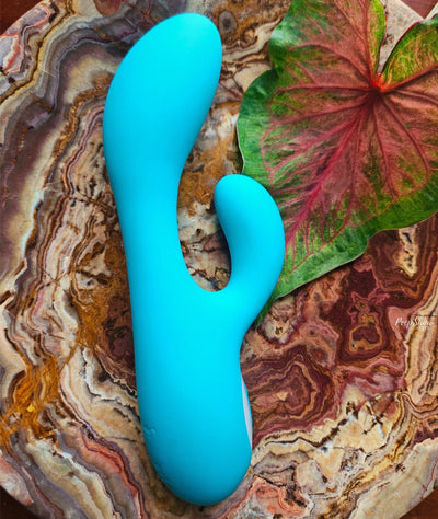 Powering up both its G-spotting shaft + clitoral stimulator with vibration that thrums and rocks.